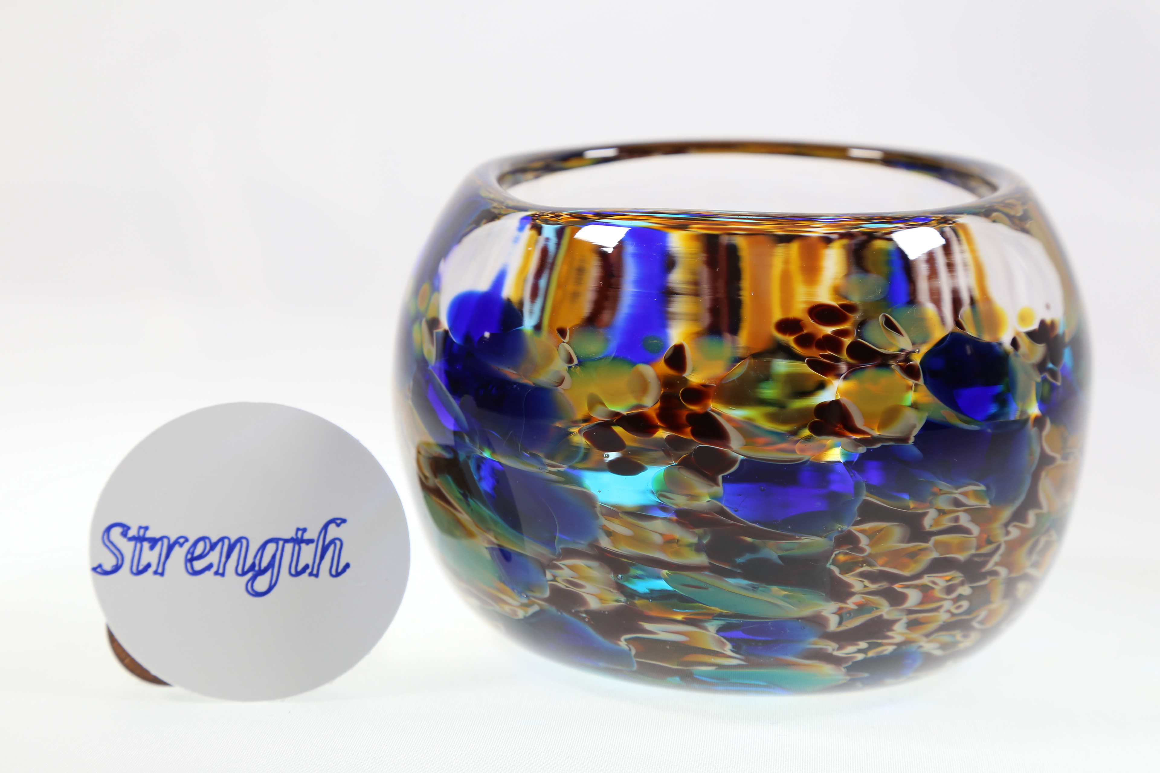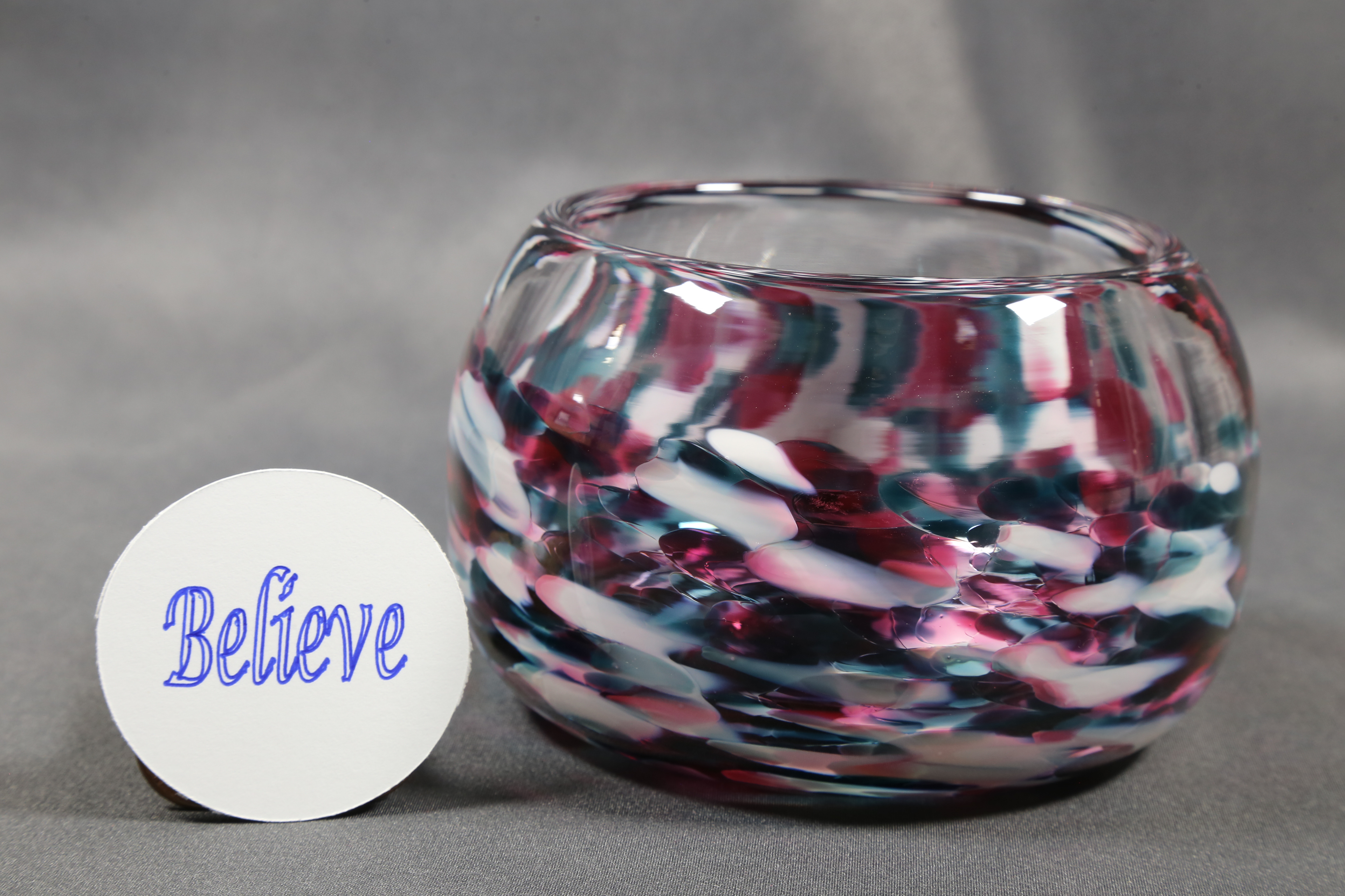 Inspired by the belief that "Pure Love" can see you through the highest highs and the lowest lows. We have witnessed the power of "Pure Love" and through our glassblowing want to share it with you by designing our bowls that shine bright in any light. Handblown by Craig and Jori at Boulder Bend Glassworks. Each is unique. No molds were used so shape, size and color will vary.